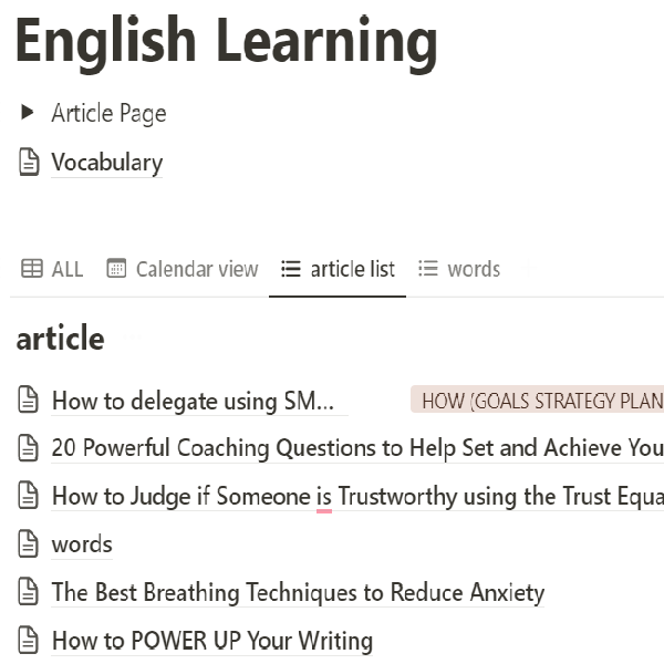 notion english learning template
